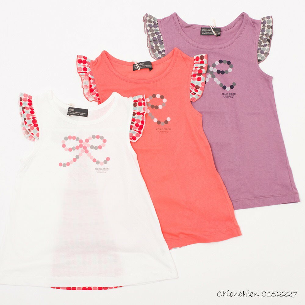 【100-110】ドット切替肩フリル Tシャツ 【子供服chienchien シアンシアンネコポス可 】