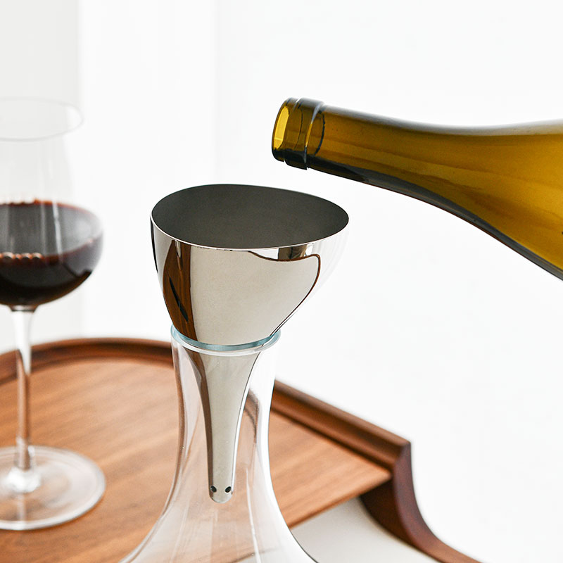 デカンタを使うと、ワインをもっと素敵に演出し、味わいを高めることができます。 洗練された左右非対称型のエアレーションファンネルでワインをボトルからフラスコに移し、場に華やかさを添えましょう。 素材はステンレススティールで、取り外し可能な特別フィルターが沈殿物を除去します。Sky デカンタとの相性も抜群です。