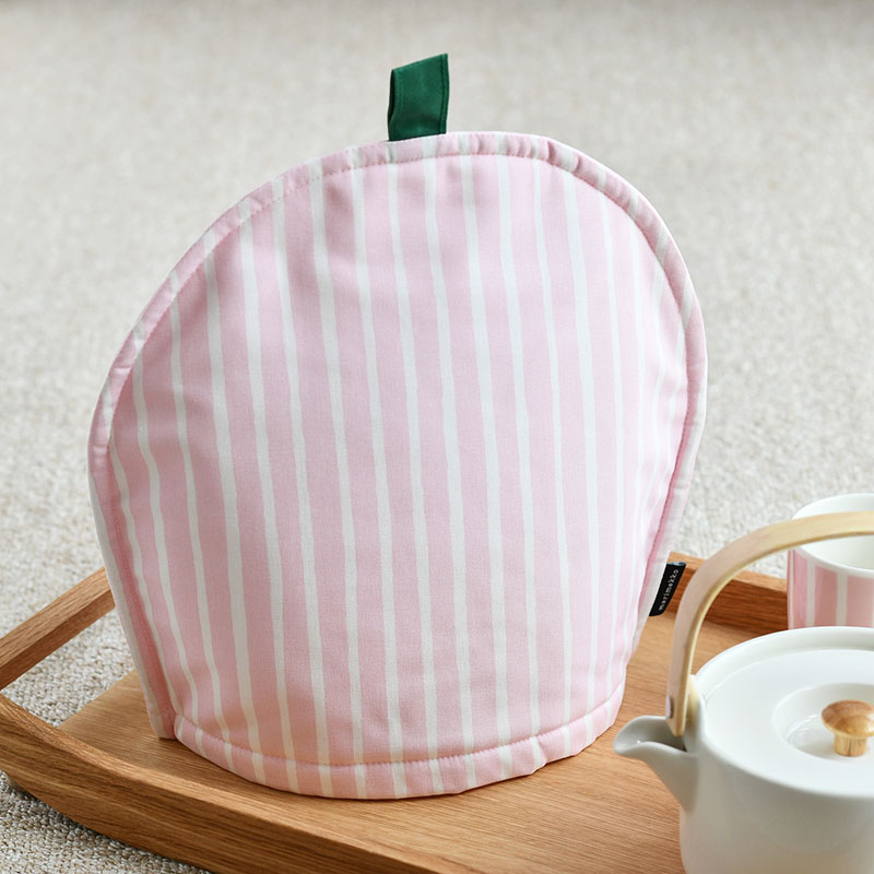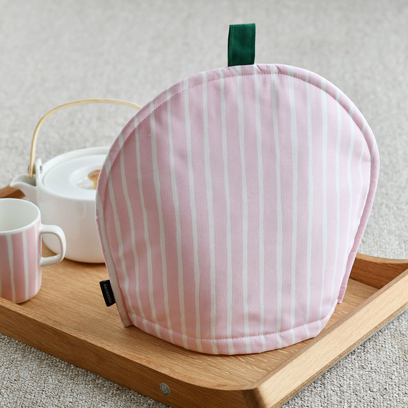 Vuokko Eskolin-Nurmesniemiがデザインを担当した、Piccolo(ピッコロ《擬音語》)柄。生き生きとした筆遣いで描かれ、手描きタッチの温もりを感じさせるストライプ柄です。 こちらは優しいピンク色のティーポットに覆い被せる布製のティーコージーです。 ぽってりとした可愛らしいフォルムがテーブルを暖かに演出してくれるので、寒い季節にも贅沢なティータイムを楽しむことができます。壁面収納もできるループ付きで、お部屋にさりげない北欧の雰囲気をプラスしてくれます。