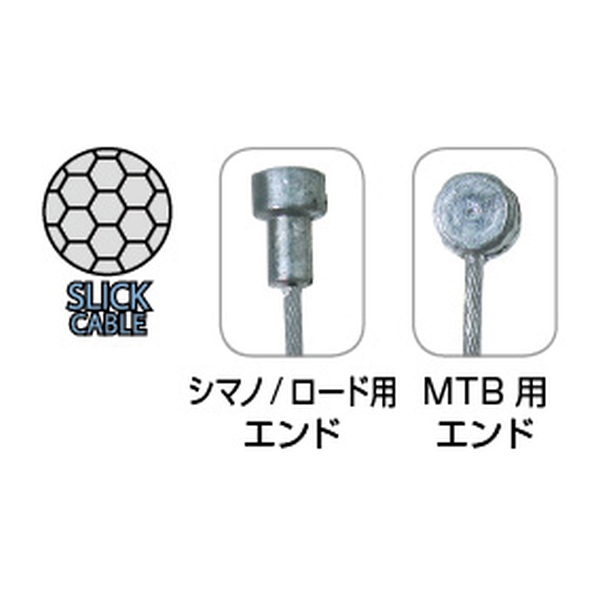 スリック加工されたステンレス ブレーキ インナーケーブル。 ■ステンレス CABLE ■?1.5mm ■2.5m ■スリック ブレーキケーブル ■ロード、MTB 用両エンド対応 ■エンドキャップ 1個付属 ■1本入