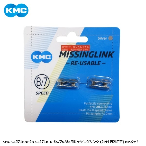 KMC ケーエムシー KMC-CL571RNP2N CL571R-N 6S/7S/8S用ミッシングリンク (2P付 再利用可) NPメッキ 自転車 ミッシングリンク