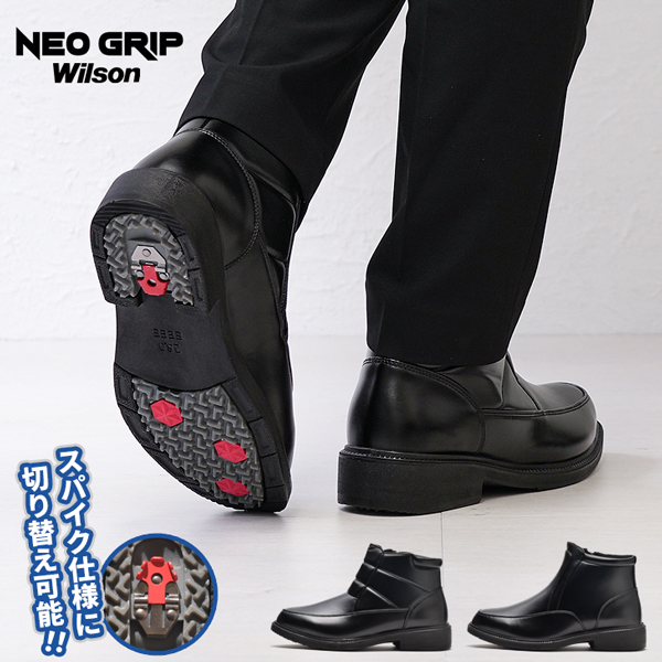 ビジネスシューズ 冬 メンズ 防滑 スパイク付き 滑らない 防水 ブーツ ロング 幅広 4E 雪 軽い wilson 8201 8202