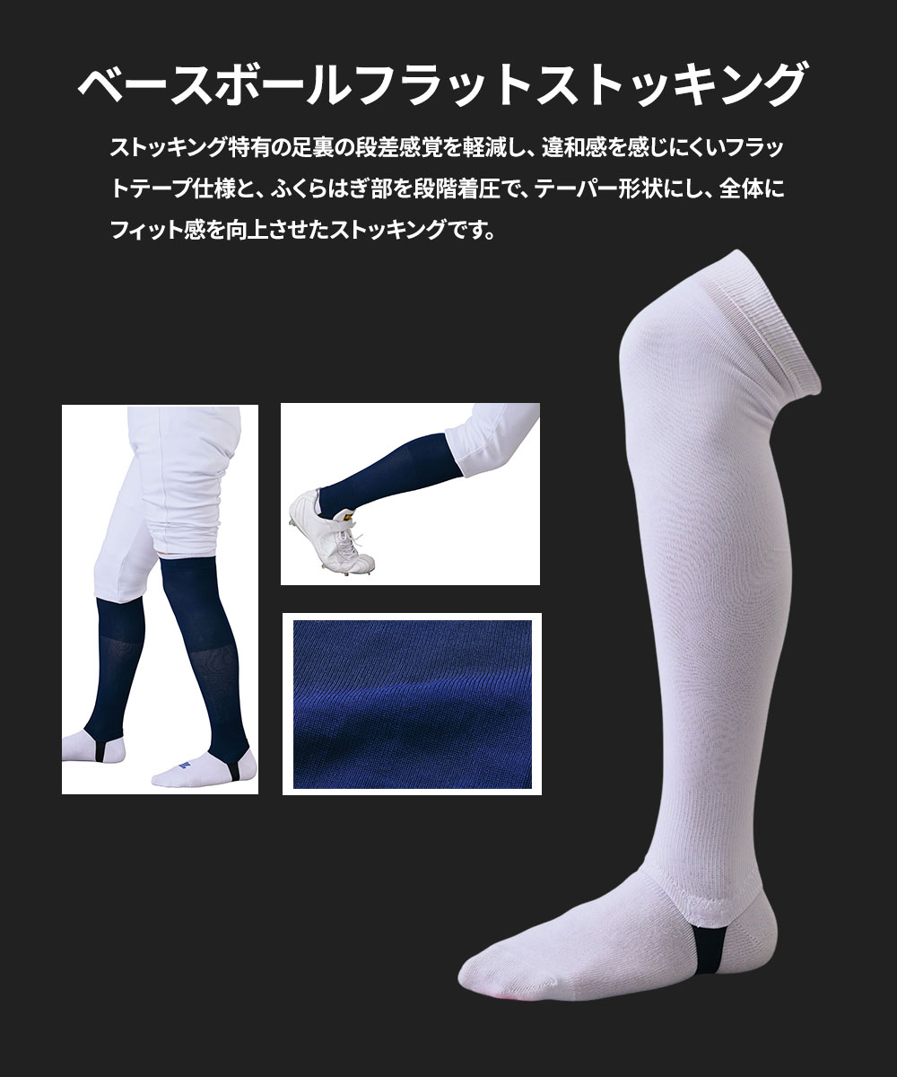 ■足底フラットテープ仕様のベースボールフラットストッキング。
