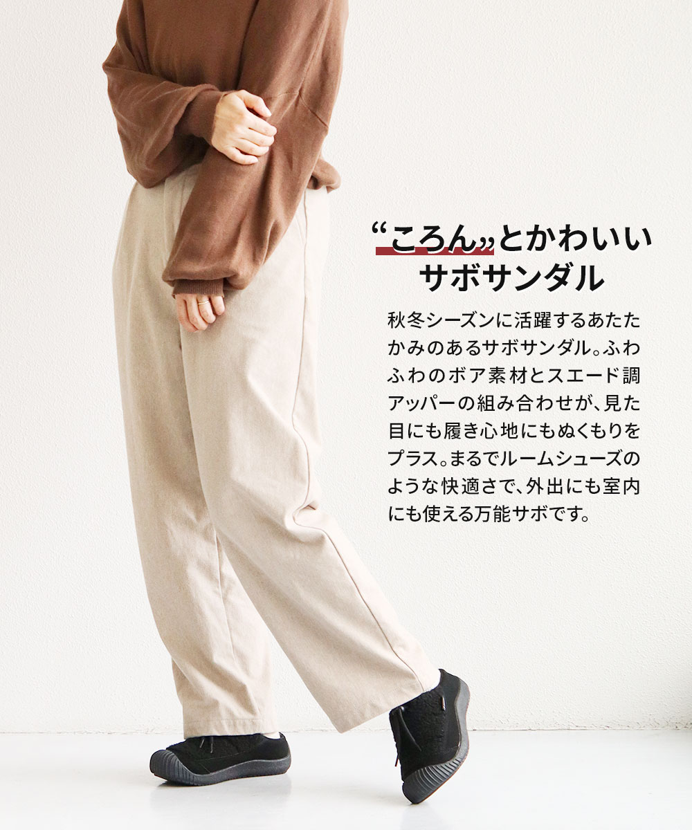 ふわふわのボア素材とスエード調アッパーの組み合わせが、見た目にも履き心地にもぬくもりをプラス。