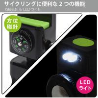 ホルダー部分には、スマホのアプリを使用しなくても方角がわかる方位磁針を装備。スマホの電池の節約にも役立ちます。