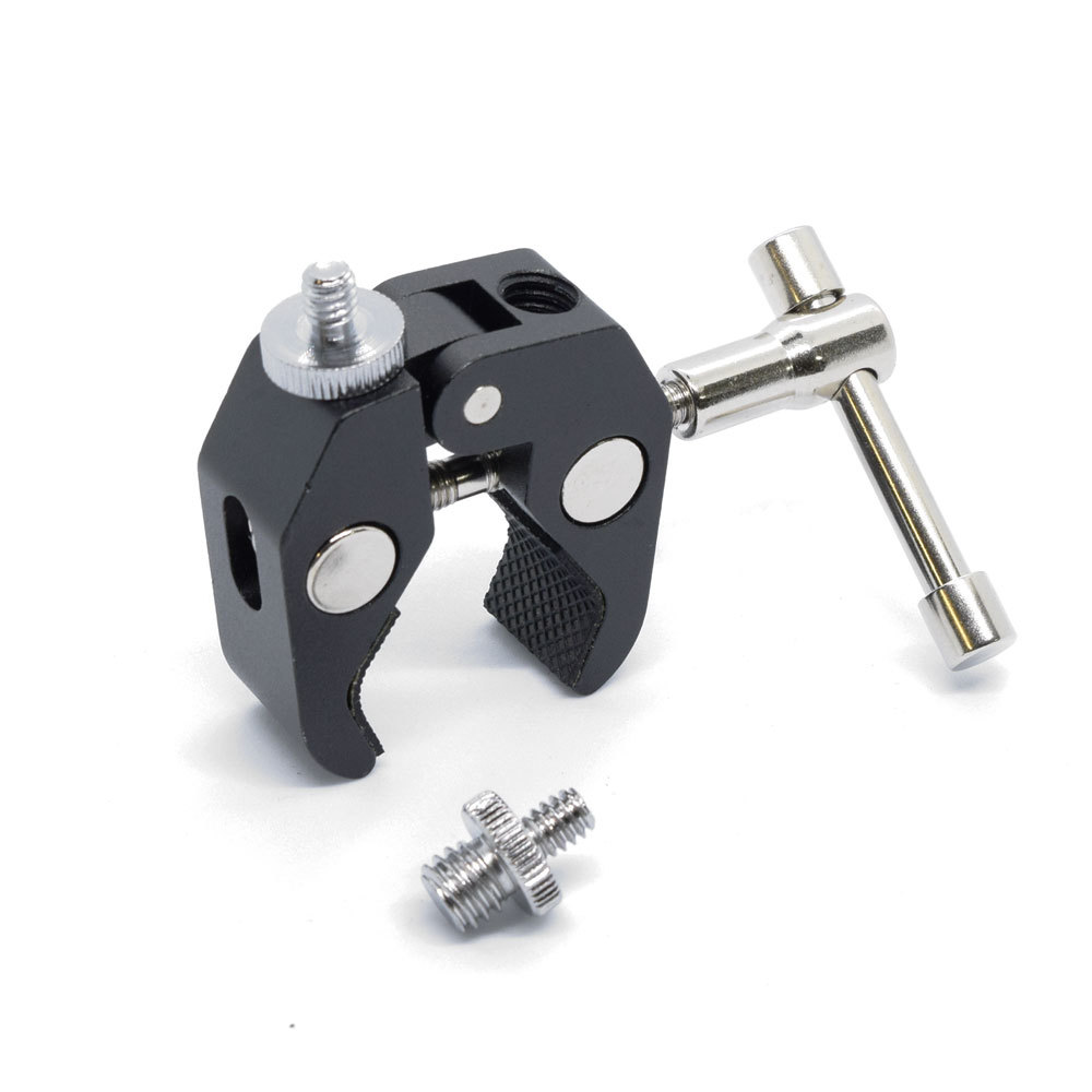 カメラ用アクセサリー以外のものにカメラを接続したり、三脚に本製品を接続して様々なものを固定できる多目的クランプです。