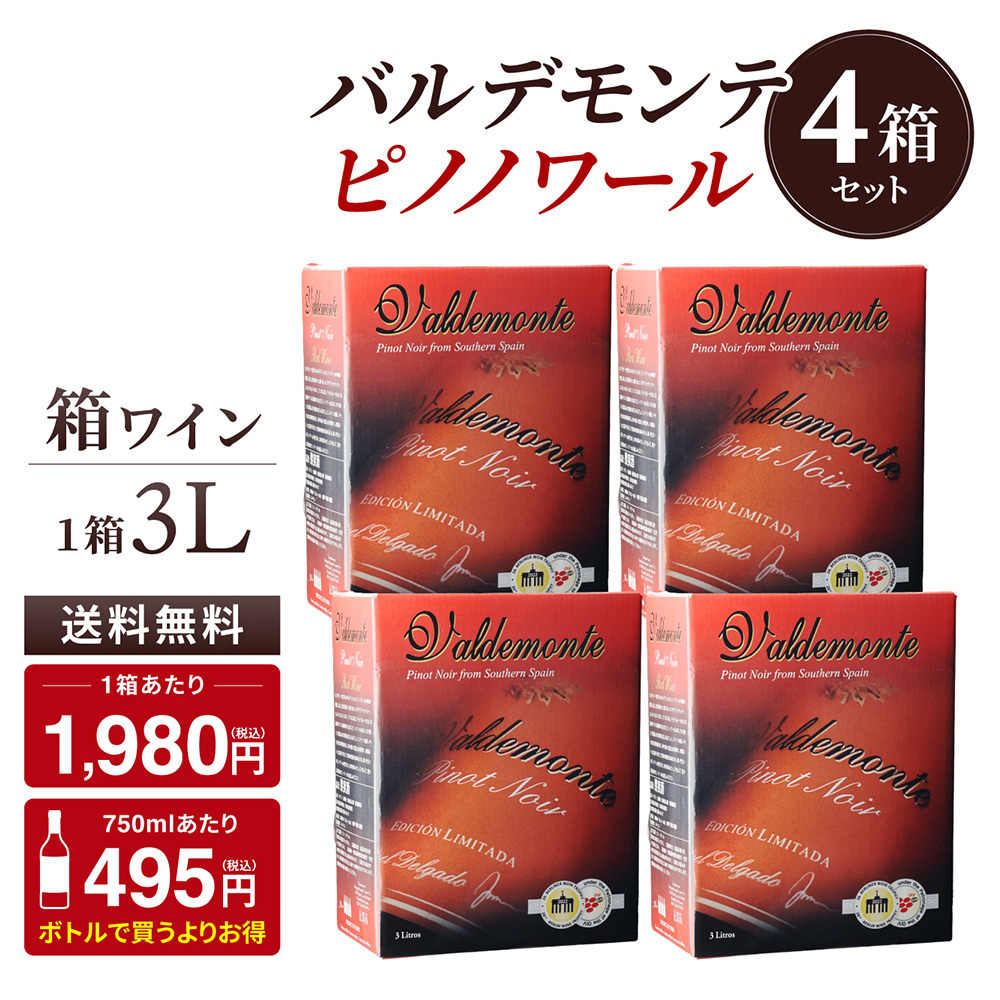 箱ワインセット 赤 ボックスワイン 格安 4箱 バルデモンテ ピノノワール 3l 3リットル 4箱 スペイン 送料無料 長S