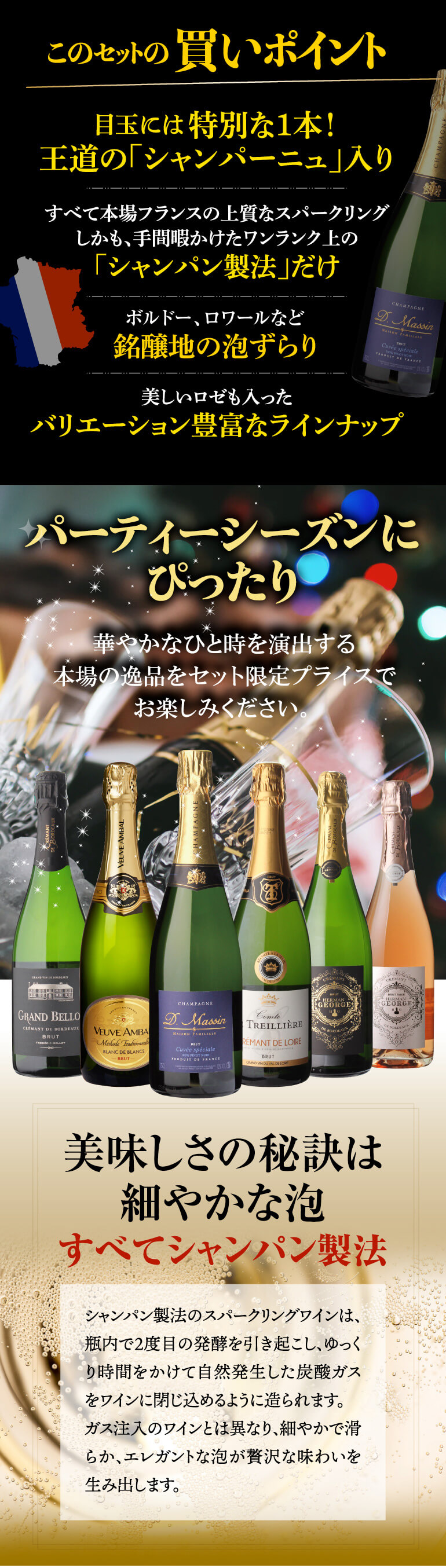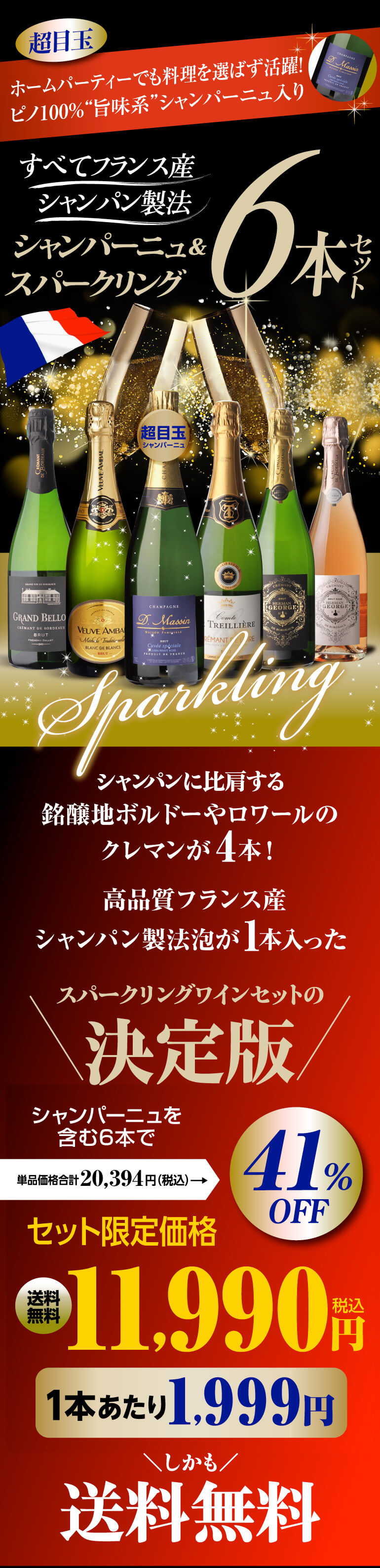 ワインセット 逸品シャンパーニュ入 仏産 シャンパン製法 スパークリング 6本セット 25弾 フランス スパークリングワイン 白泡 浜運A