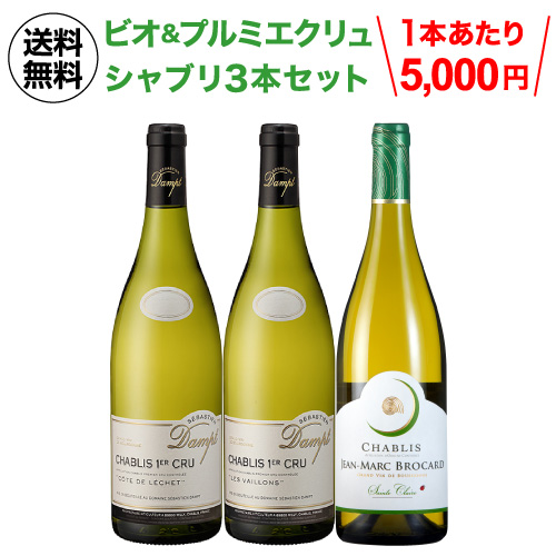 1本あたり5,000円(税込) 送料無料 ビオやプルミエクリュも入った!上質シャブリ 3本セット 4弾 750ml ワイン ビオ ワインセット 送料無料 浜運 爆買 キャンペーン