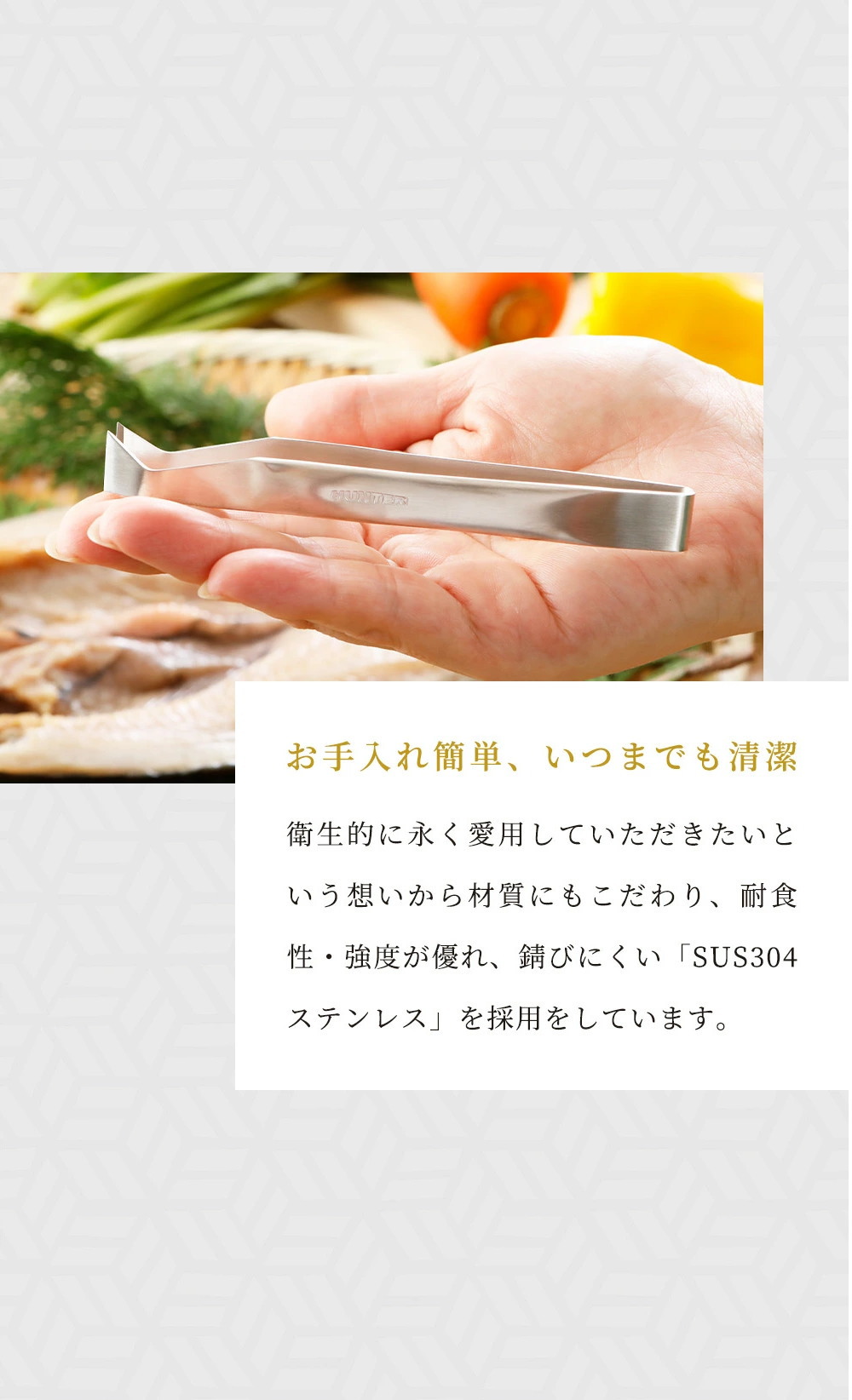 ■永く愛用していただきたいという想いから、材質にもこだわり、耐食性・強度が優れ、錆びにくい「SUS304ステンレス」を採用。長期間、衛生的にご使用いただけます。