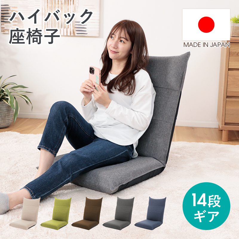 座椅子 1人掛け リクライニングチェア ハイバック おしゃれ 腰痛 コンパクト 折りたたみ 日本製 背もたれ リラックス フロア