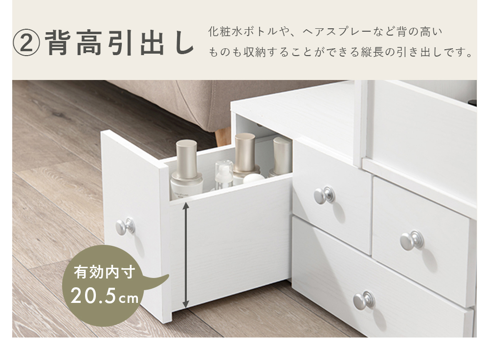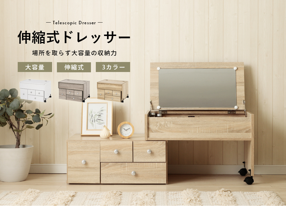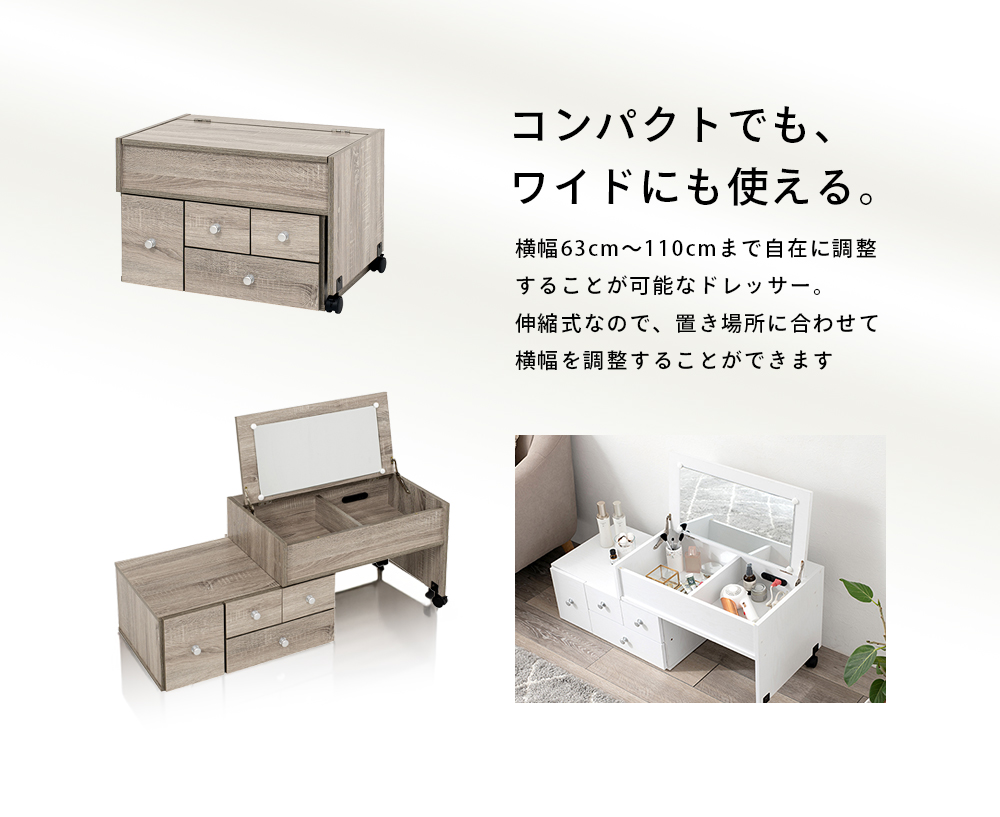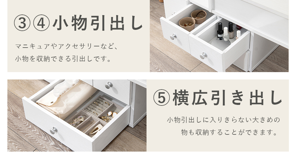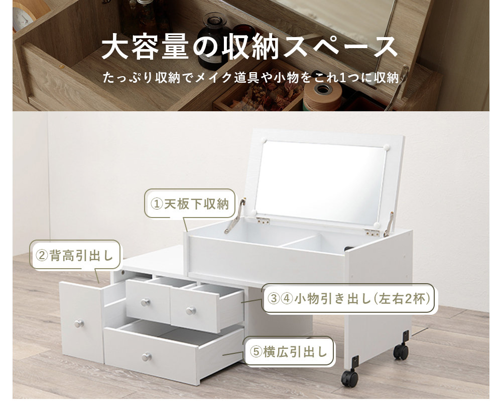 ドレッサー ドレッサーテーブル 化粧台 鏡台 コンパクト 収納 テーブルドレッサー ロータイプ 引き出し おしゃれ メイク台 白