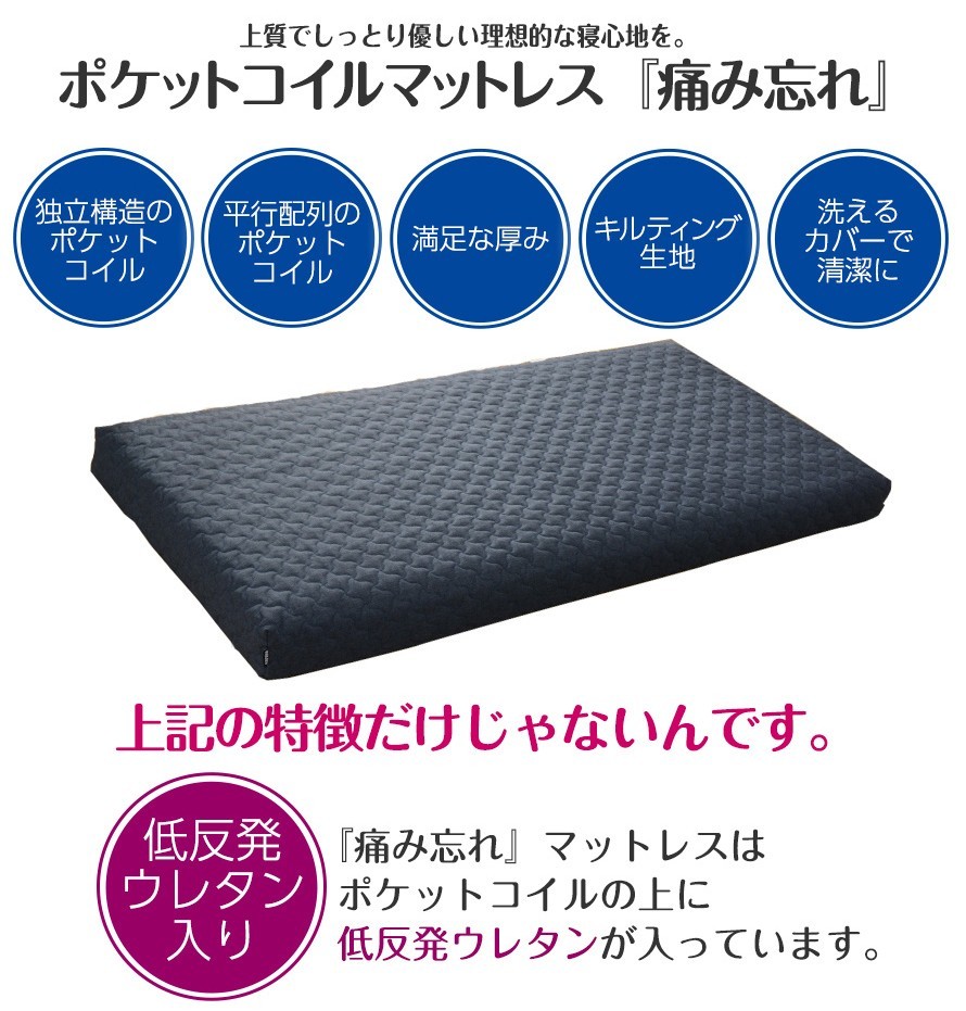 マットレス ポケットコイルマットレス シングル 低反発 キルティング ベッド用 睡眠 快眠 日本製 マットレス シングル 腰痛 新生活 家具 A954