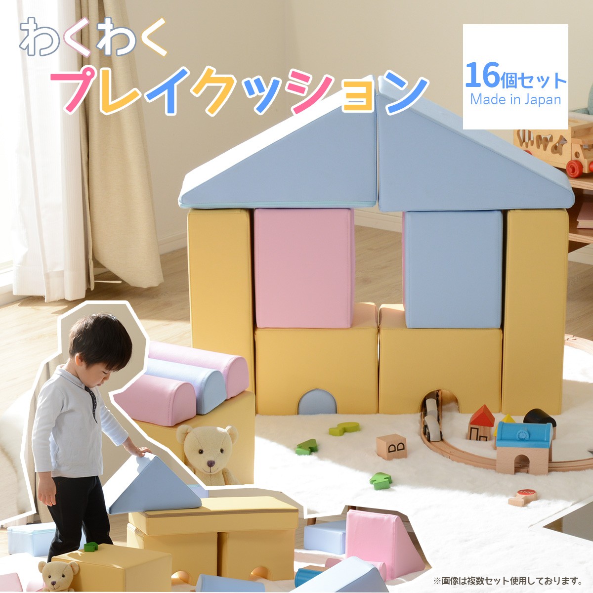 積み木 クッション 16個セット ソフトブロック 日本製 おもちゃ 知育 玩具 室内 遊具 やわらかい かわいい キッズスペース パステル A998 16