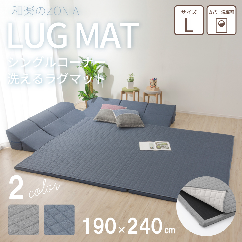 ラグマット クッションラグ 極厚 厚い 冬 洗える コーナー L 190x240 背もたれ ホットカーペット対応 こたつ ソファ 暖房 保温 冬用敷きパッド A825