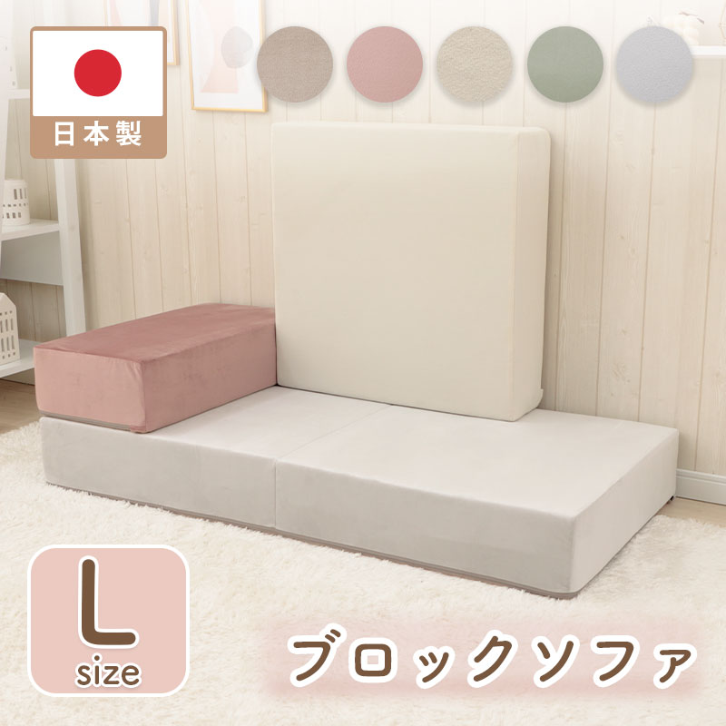 コンパクトサイズで移動しやすく、レイアウト自由なブロックソファ。同じシリーズのMサイズ・Sサイズと組み合わせて、オリジナルソファやマットレスとしてもお使いいただけます。ベロア調生地5色展開で、形も配色もお好みに合わせて自由に!洗濯可能なカバーリング仕様なのも嬉しいポイント。気軽に洗うことが出来ていつでも清潔に保てます。