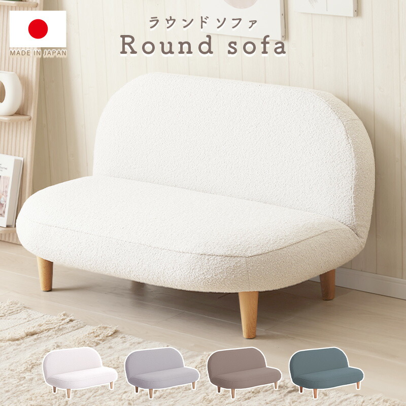 もこもこした手触りのブークレ生地がかわいいラウンドソファ。