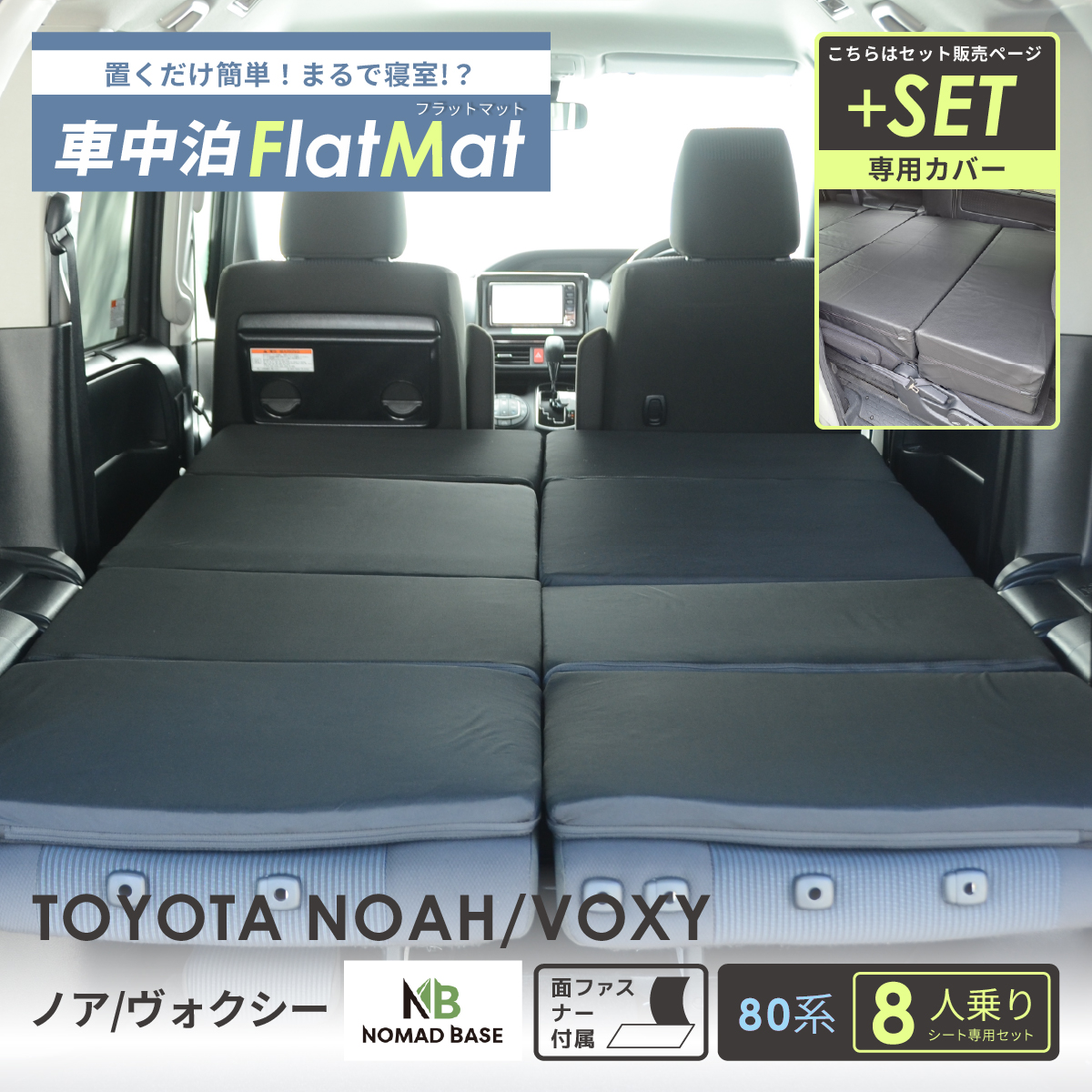 車中泊 マット トヨタ ノア ヴォクシー 80系 8人乗り 専用 車中泊グッズ セットフラットマット+マットカバー NOMAD BASE A1607a-8 D1607 爆買
