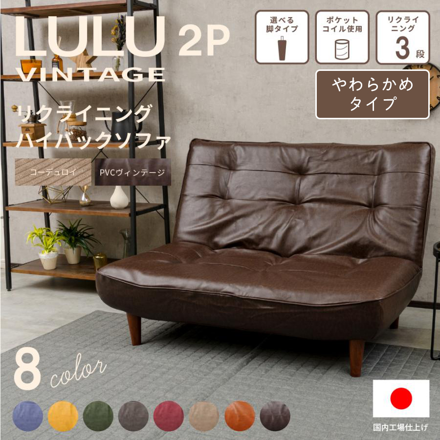 ハイバックソファ 2P リクライニング ソファ おしゃれ ヴィンテージ 2人掛け ローソファ ポケットコイル 日本製 A40-vtg 爆買