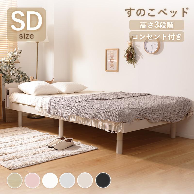 ベッド セミダブル すのこベッド 高さ調整 コンセント 収納 パイン材 ベッドボード フレーム B104-sd