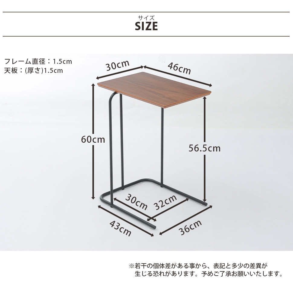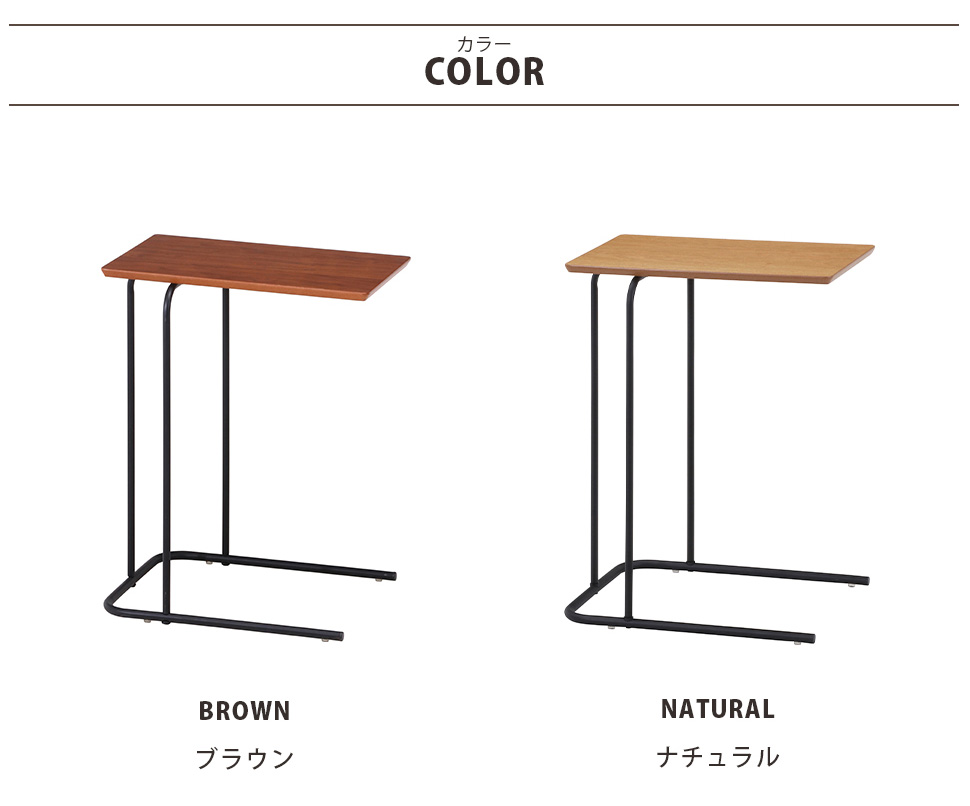 シンプルでスリムなコの字型サイドテーブル。