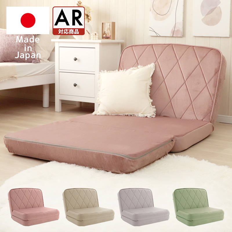 【商品名】 3way ソファベッド ベロア調×ダイヤモンドキルト