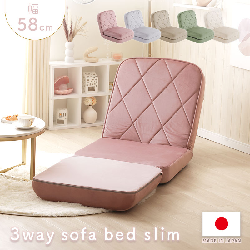 ソファベッド ソファ カウチソファ 3way ダイヤモンドキルト ベロア 一人暮らし ワンルーム くすみカラー 大人かわいい リクライニング スリム 一人掛け