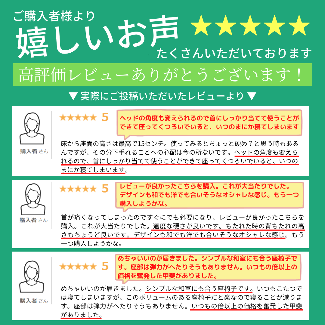 座面ポケットコイル入り座椅子 頭部・背もたれ2ヶ所 14段階リクライニング機能付座椅子
