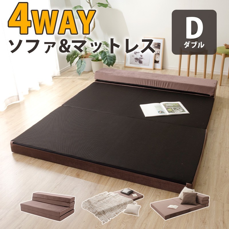 ソファーベット ソファーベッド 2人掛け 日本製 マットレス ダブル 4WAY 車中泊 折りたたみ ベッド ローソファ 和楽 a840