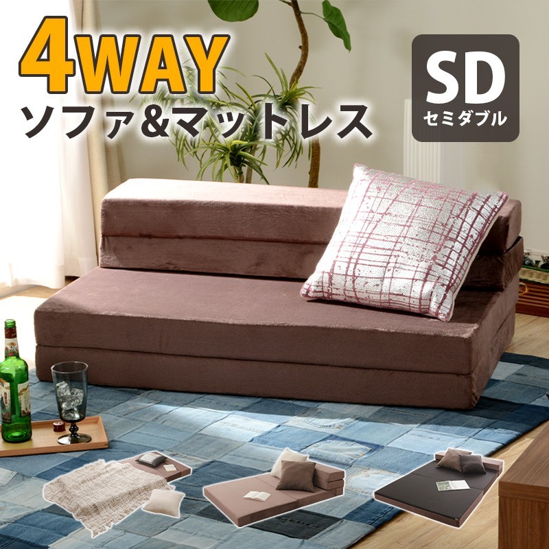 ソファーベット ソファベット ソファ 2人掛け 日本製 マットレス セミダブル 4WAY 車中泊 折りたたみ ベッド ローソファ 和楽 a841