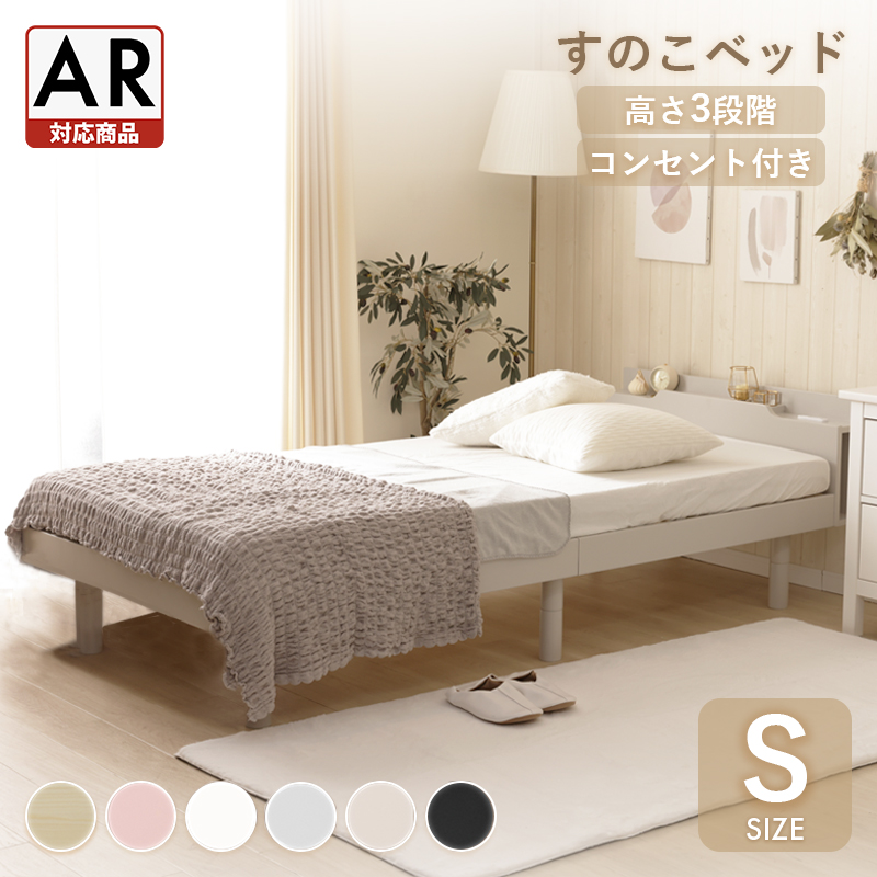 ベッド すのこベッド シングル ベッドフレーム 宮付き ヘッドボード 2コンセント ブックシェルフ 木製ベッド 天然木 パイン材 すのこ板 高さ調節