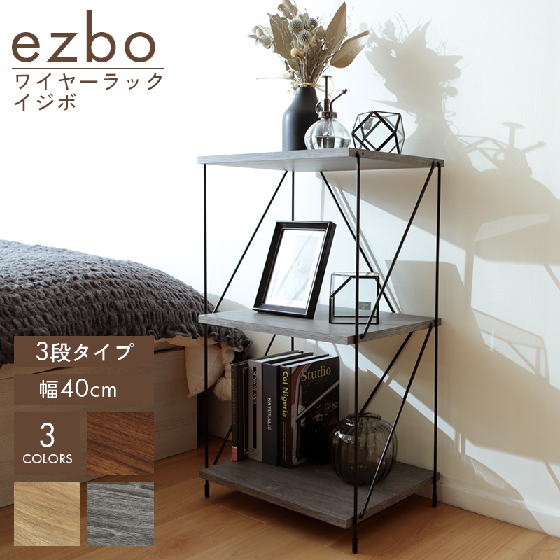 【商品名】 ezbo(イジボ)ワイヤーラック幅40cm/3段