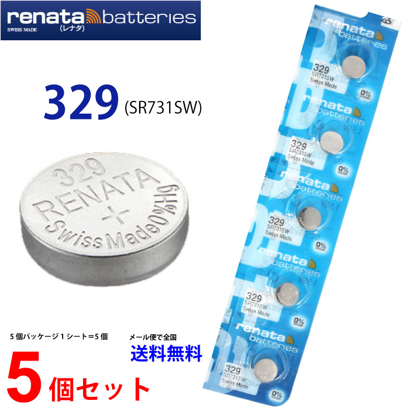 正規輸入品 スイス製 renata レナタ 329 (SR731SW)×5個 【当店はRENATAの正規代理店です】でんち ボタン電池 時計電池 時計用電池 時計用 SR731SW 329 電池 スウォッチグループ