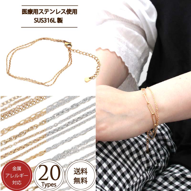 SUS316L ステンレス ブレスレット 16cm+アジャスター5cm サージカルステンレス 金属アレルギー ブレス 華奢 ユニセックス ジュエリー レディース 爆買