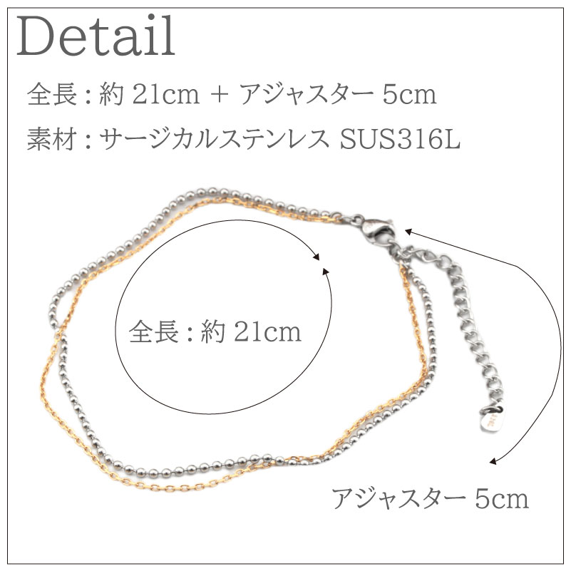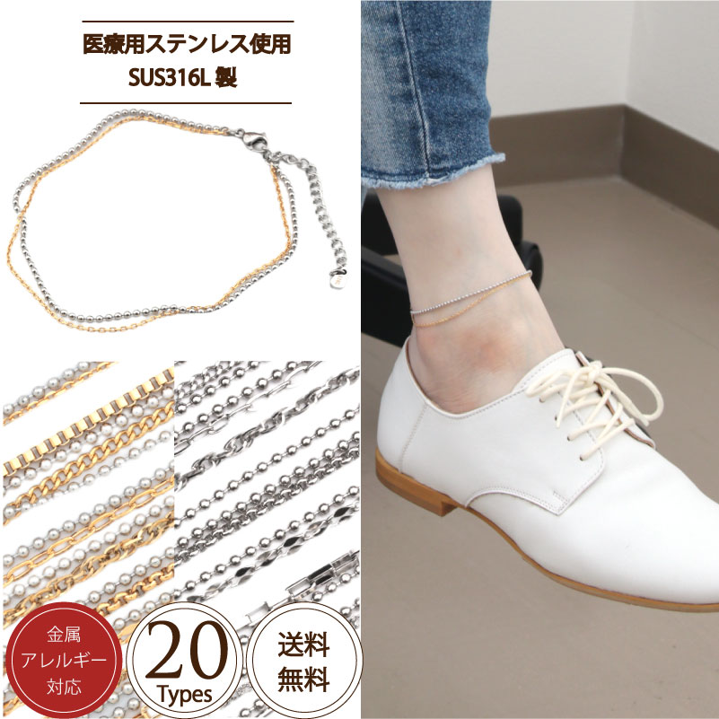 SUS316L ステンレス アンクレット 21cm+アジャスター5cm サージカルステンレス 金属アレルギー ブレス 華奢 ユニセックス レディース 爆買