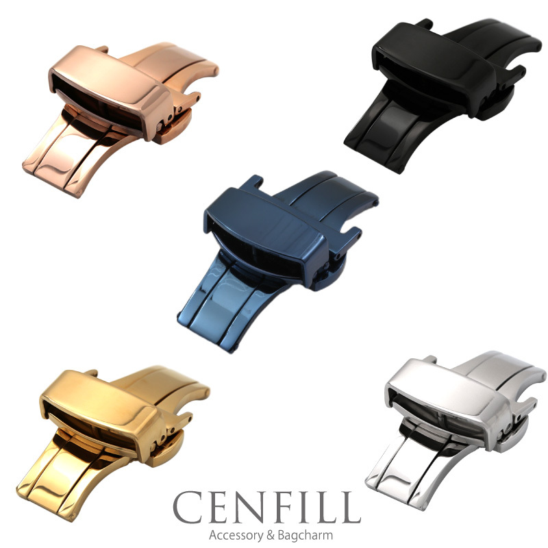 ステンレスプッシュ式 Dバックル 観音開きタイプ ステンレススチール 時計用バックル アップルウォッチ 14mm 16mm 18mm 20mm 22mm バックル 革