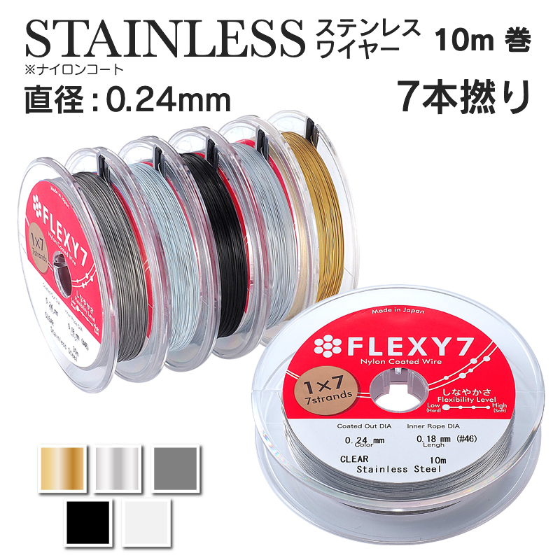 日本製 7本縒り ナイロンコート ステンレスワイヤー 直径 0.24 mm 10m巻 安心の日本製 ナイロンコートワイヤー 手芸 アクセサリー DIY