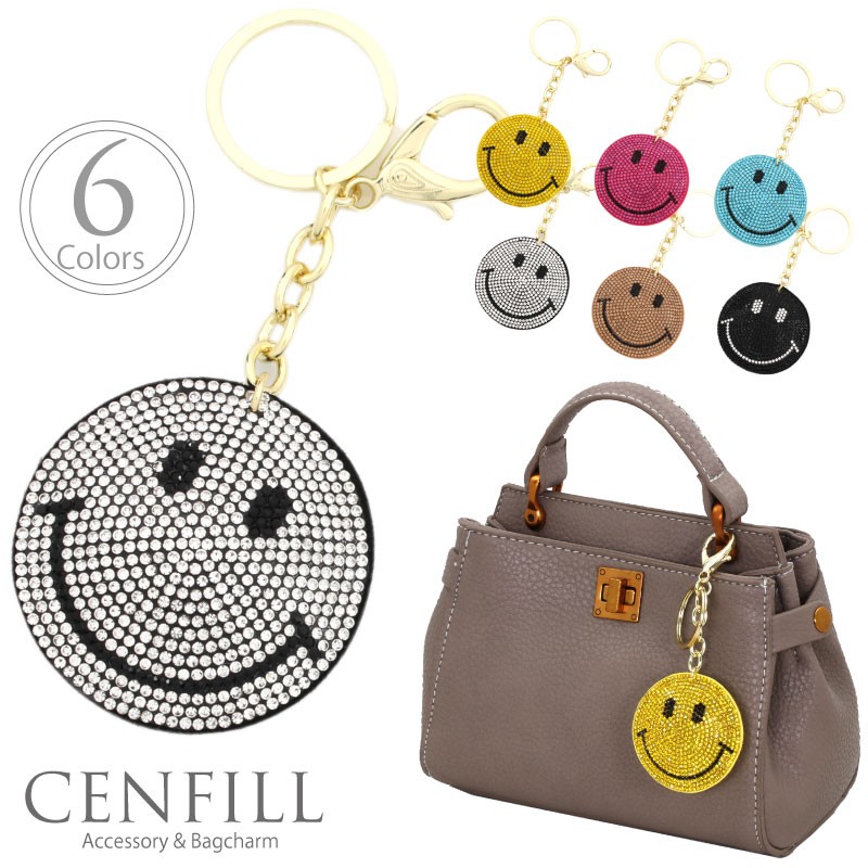 スマイル バッグチャーム バッグチャーム スマイル レディース クリスタル バッグ キーホルダー キラキラ ゴールド チェーン チャーム ニコちゃん ギフト 鍵 キー かわいい cenfill センフィル
