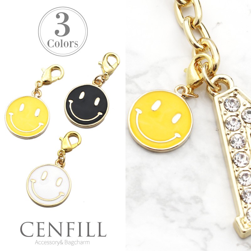 チャーム アクセサリー スマイル charm レディース ストラップ キーホルダー キラキラ パーツ ファスナー チェーン 爆買