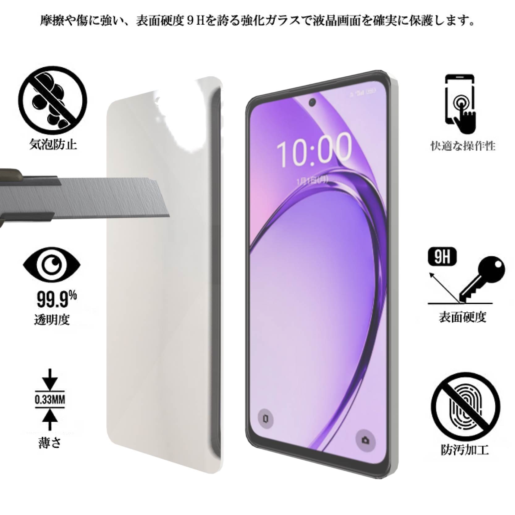 液晶保護ガラスフィルム 2枚セット OPPO A3 5G 保護フィルム ガラスフィルム ガラス 強化ガラス 液晶保護 飛散防止 指紋防止 硬度9H 送料無料