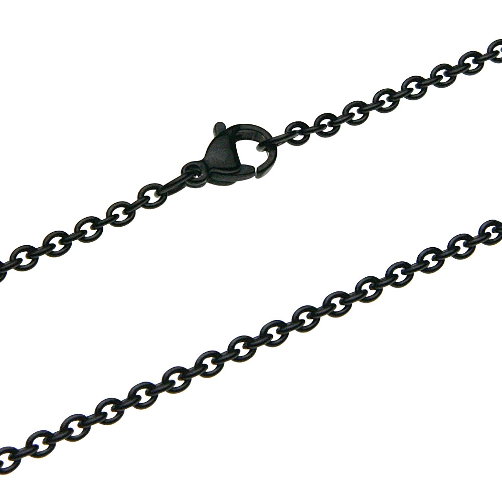 PVDコーティングでブラック加工された幅2mmのステンレス製の丸あずきチェーンです。