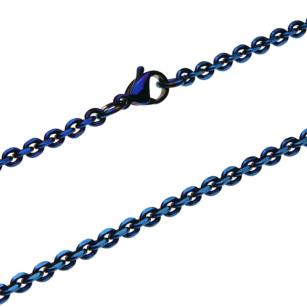 PVDコーティングでカラー加工された幅2mmのステンレス製の4面カットあずきチェーンです。