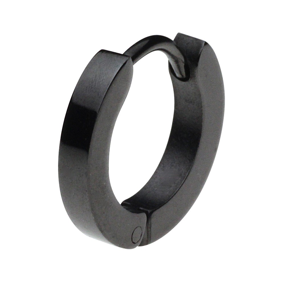 光沢のあるブラックが魅力的な少し細めのステンレス製のフープピアスです。細身なので2個以上の重ね着けでもゴテゴテし過ぎないデザインと言えます。燻し銀とは違う艶のある黒は洗練された高級感がある色です。
