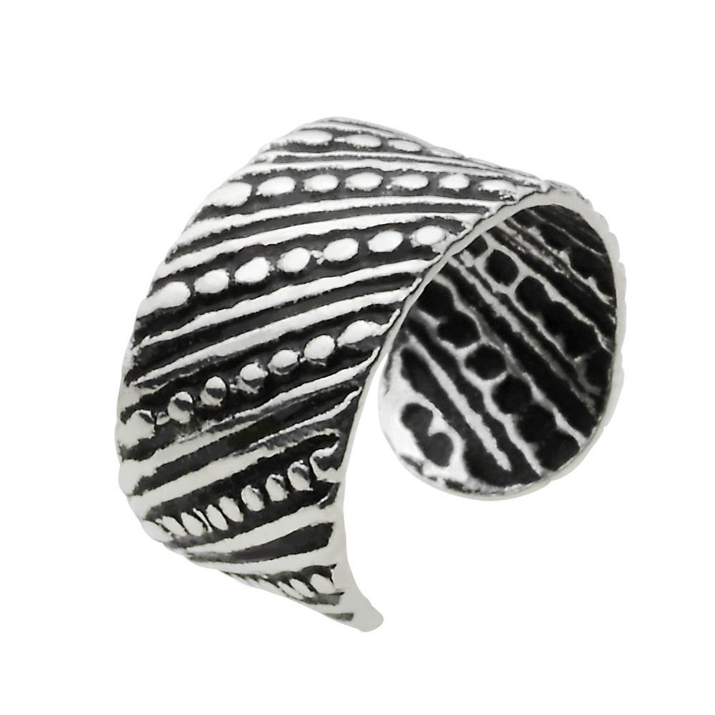 オリエンタルな雰囲気が魅力のハンドメイドのシルバーイヤーカフ(イヤークリップ)です。輝くシルバーアクセサリーとは違う魅力がある手作り感が雰囲気抜群のアクセサリーです。小さな子供の指輪や足に装着するトゥーリングとしても活躍してくれます。