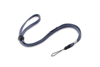 別売のSKR-01の穴、またはテルトンモデル(SRG-415・SRE-515)のストラップ取付け穴に通して首からさげます。長さ調節ボタン付。