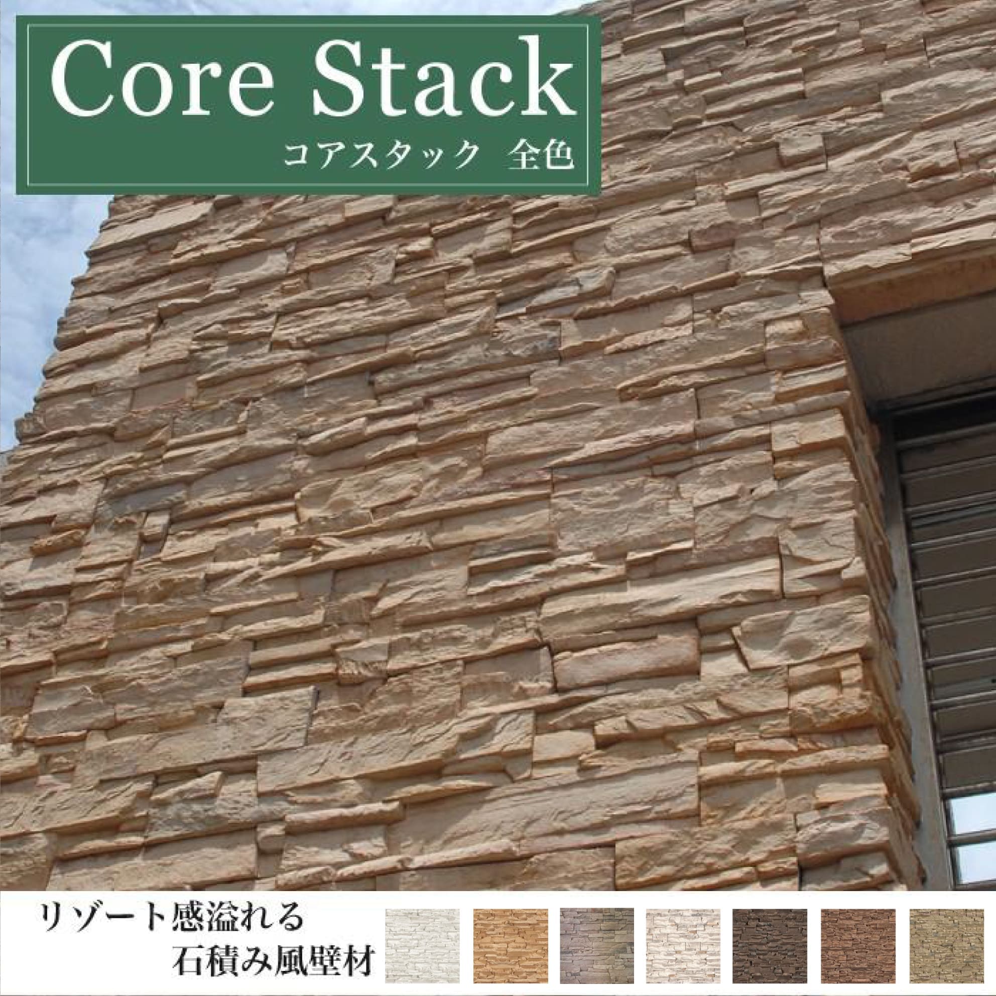 人気のレッジストーンデザインのコアスタック。切り出し石を積み重ねたようなスタイルです。内装はもちろん、エクステリアにも人気です。ナチュラル感のある積み上げ石で飽きの来ないスタイルです。