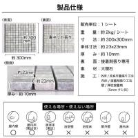 単体寸法:約23×約23 mm シート寸法:約300×300 mm 厚み:約10 mm 重量:約2 kg/シート 平米必要枚数:11.11シート/m2 |