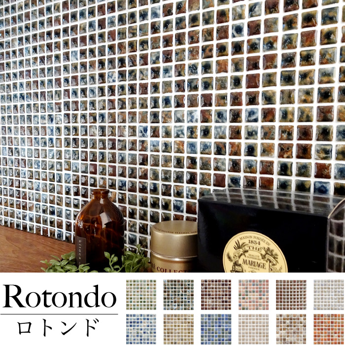 15ミリ角の小さなモザイクタイル。ぷっくり膨らんだタイルです。コロンとした面が並ぶロトンドは陰影が生まれ、立体感のある壁面を創り出します。ひとつのシートに様々な濃淡ある色合いがミックスされているので、インテリアに合わせやすいタイルシートです。