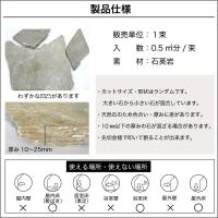 1、天然石をランダムカットした商品のため、大きさ・色・厚みにバラつきがあります。また、厚み10mm以下・25mm以上の石が混ざる場合があります。 2、施工後の酸洗いは変色の恐れがありますのでご注意ください。 3、石の特性上、表面が層状に剥がれる場合があります。施工前に剥がれがある時は取り除いてから施工してください。 4、乾燥時と濡色では色合いが大きく異なります。 5、入数は自然石の形を整えないで施工した場合の数量です。石を削ったりして石の形を整えて、目地幅をある程度一定に整える貼り方の場合は、20〜30%の材料が余分に必要となることがあります。 |