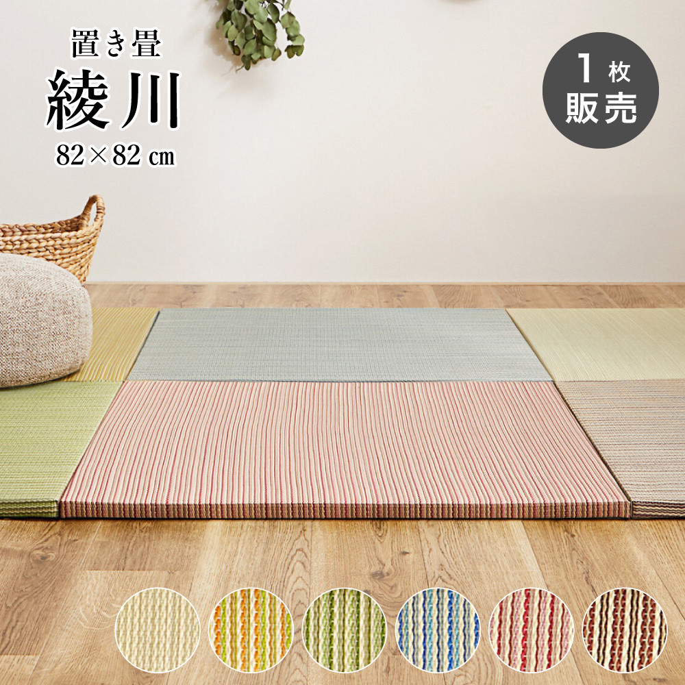 置くだけい草ユニット畳 82x82cm 厚み2.5cm カラー畳 半畳 琉球畳滑り止め付(置き畳 綾川 82x82x2.5 全色 1枚販売)代引き不可・メーカー直送品